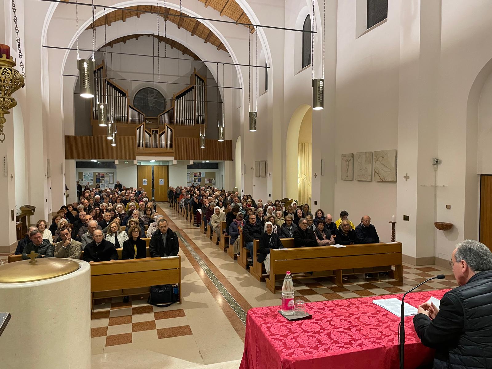 In una chiesa gremita il Vescovo si è messo come prima cosa in ascolto di osservazioni e riflessioni da parte dei presenti sul tema.